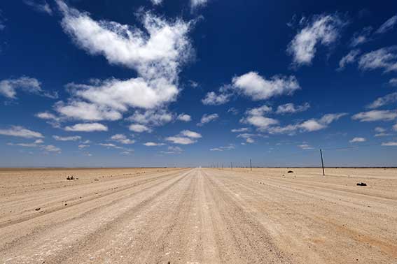 Strasse C35 bei Henties Bay im Dorob Nationalpark, Namib-Wüste, Namibia