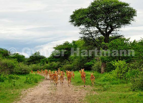 Impalaherde auf Farm Wildacker, bei Grootfontein, Namibia