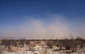 Staubsturm über trockener u. karger Buschlandschaft, bei Khorixas |