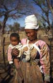 Buschmannfrau mit Kind, Frau eines Farmarbeiters, Otjozondjupa Region |