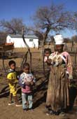 Buschmannfrau mit Kindern, Frau eines Farmarbeiters, Otjozondjupa Region |