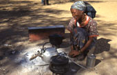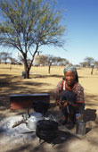 Buschmannfrau kocht auf offener
