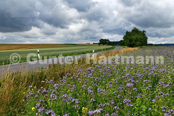 Landstraße zwischen Feldern bei Einbach im badischen Odenwald,
